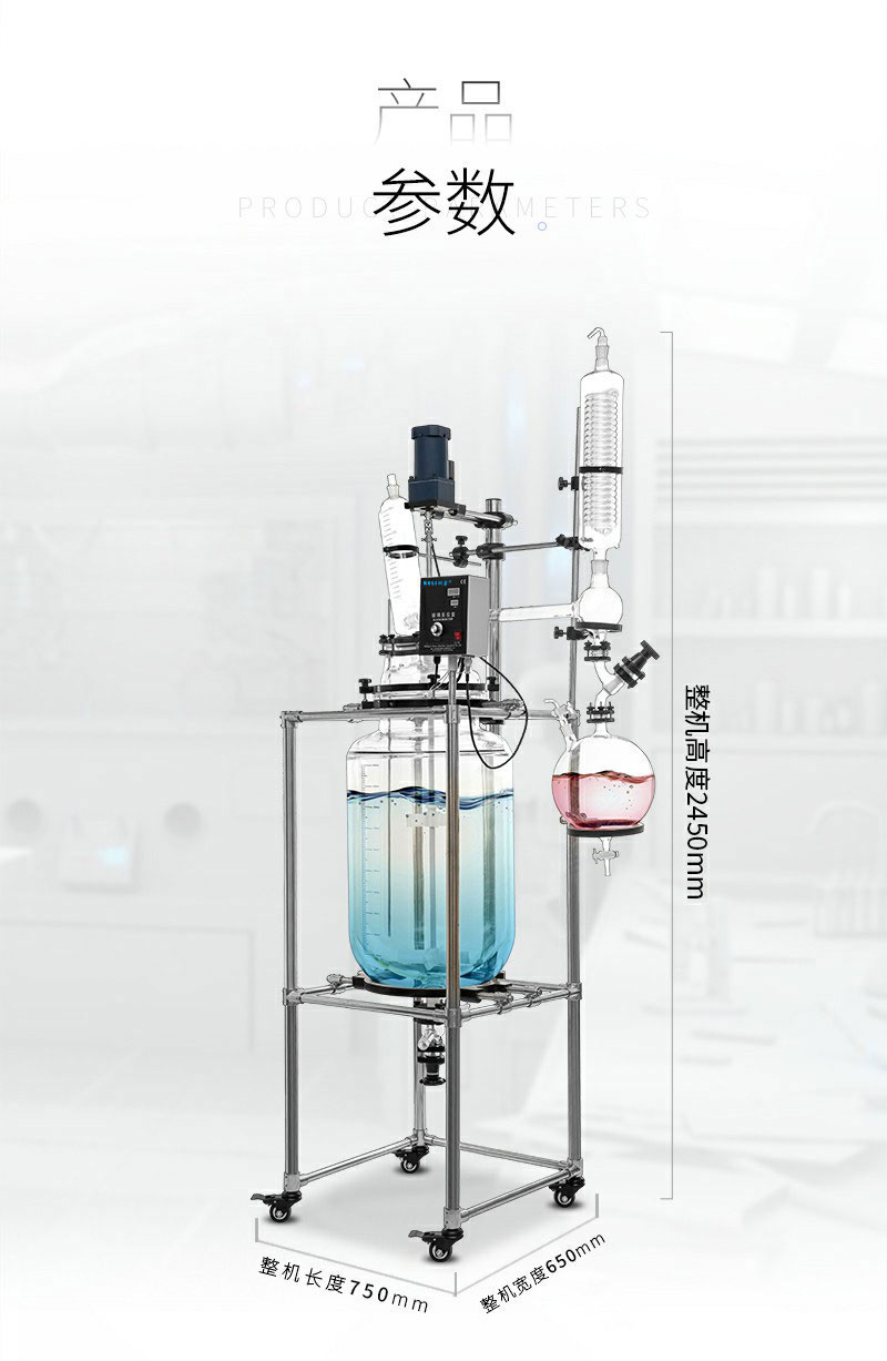 雙層玻璃反應釜S212-50L用途特點:雙層玻璃反應釜​內層容器放置反應物料,同時可抽真空和調速攪拌,夾層可導入冷凍液、水和高溫液對物料進行升溫和冷卻。用于化學、精細化工、生物制藥新材料合成等實驗、中試及生產。