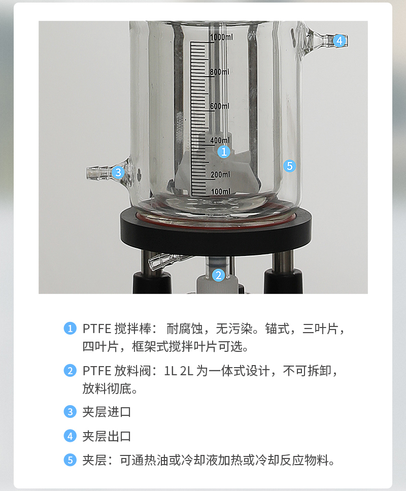 5L底板式雙層玻璃反應釜內層容器放置反應物料,同時可抽真空和調速攪拌,夾層可導入冷凍液、水和高溫液對物料進行升溫和冷卻。用于化學、精細化工、生物制藥新材料合成等實驗、中試及生產。產品可與循環(huán)水式多用真空泵、隔膜真空泵、低溫循環(huán)(真空)泵、循環(huán)冷卻器、恒溫循環(huán)器、低溫冷卻液循環(huán)泵、密閉制冷加熱循環(huán)裝置(又名:高低溫循環(huán)裝置)等配套組成系統(tǒng)裝置。